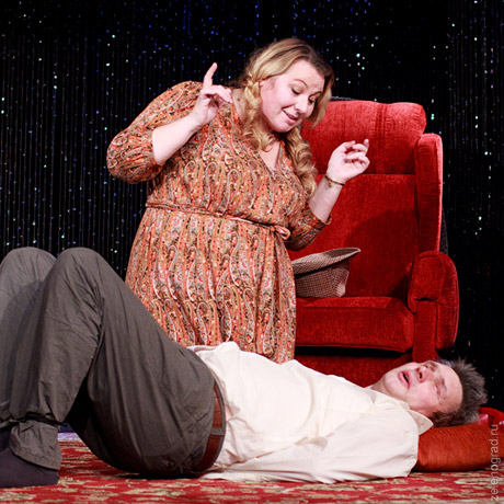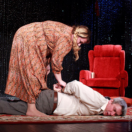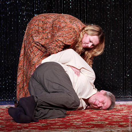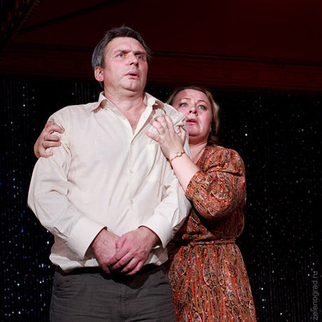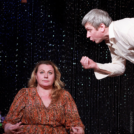 Это пьеса для двух актеров, в спектакле заняты Наталья Табачкова и Александр Бавтриков — «старейшие» артисты театра, семейная и творческая пара. «Табачкова и Бавтриков — две яркие индивидуальности, которые, может быть, еще недостаточно раскрыты, — рассказал Павел Курочкин. — Они могут сыграть пьесу неожиданно — так, как её до этого ещё не играли, и проявить те грани своего дарования, которые публика ещё не видела».