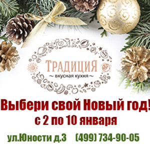 На период новогодних праздников со 2 по 10 января 2015 года ресторан «Традиция» подготовил для зеленоградцев увлекательную праздничную программу — «Выбери свой новый год»!