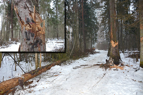 Стало быть, моё очередное обращение в администрацию посёлка буквально накануне происшествия (в День Конституции 12 декабря) об установке щитов в местах вырубки было по сути правильным. Жаль, что пильщики леса начинают делать свои делишки без обязательного предварительного оповещения жителей, проживающих на данной территории, и ограждения самых опасных участков. А тут... лучшие деревья выпилили, а про сухостой почему-то подзабыли - парадокс !