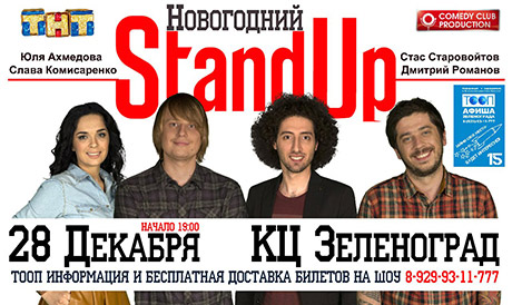 28 декабря 2014 г. 19:00 в Культурном центре «Зеленоград» состоится Большой Новогодний концерт резидентов телепроекта Stand Up на ТНТ.