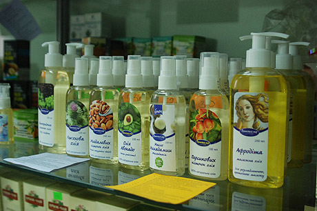 — Да, мы готовим много акций и выгодных предложений. Как раз сейчас предлагаем одну из них. Покупая базовые косметические масла (из виноградных, персиковых или миндальных косточек), посетители смогут бесплатно воспользоваться эфирными маслами для создания одного из чудодейственных бальзамов, о которых мы говорили выше. Например, вы купили масло виноградных косточек, а в подарок мы добавим, согласно арома-рецептуре, эфирные масла герани и иланг-иланга. Также мы можем составить композицию на основе масел специально для вас и по вашему рецепту.
