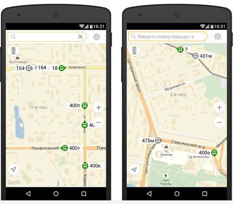 Сейчас по Зеленограду «ездят» 400-е маршруты, автобусы областного перевозчика «Мострансавто» (в том числе №7 и №18), а также автобусы «Автолайна». Поиск по маршрутам работает своеобразно — ищет только среди загруженных меток на видимом фрагменте карты, поэтому находит далеко не всё.
