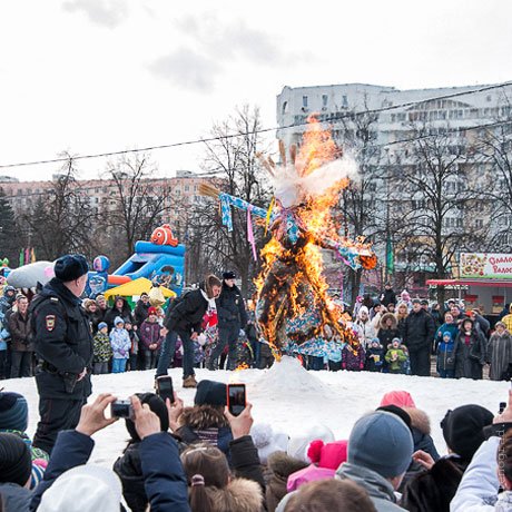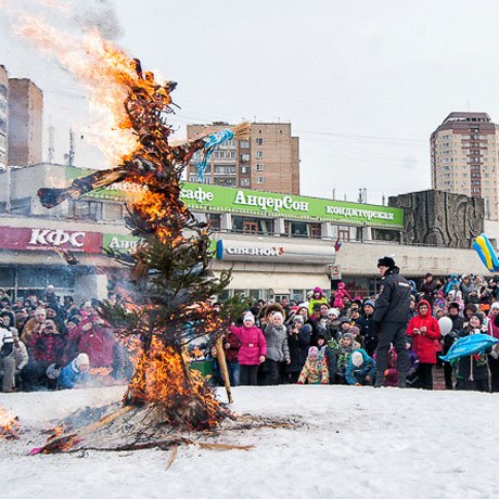 Метание валенка на Чёрном озере, сжигание трёхметрового чучела на площади Юности, медведь на велосипеде у ТК «Панфиловский» и много чего ещё успел снять корреспондент Зеленоград.ру Александр Сайганов.
