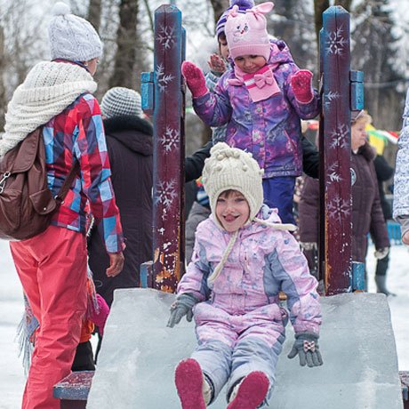 Ледяная горка не такая большая как в прошлые годы, но дети счастливы