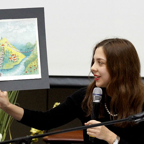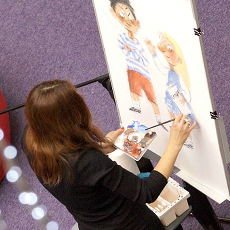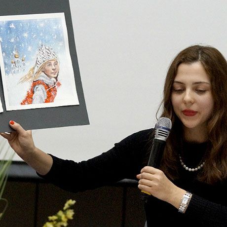 Рассказала о работе в тандеме с художником, что является немаловажной частью в оживании образов для читателя. Позволила немного пофантазировать и порассуждать ВМЕСТЕ с ребятами. Иллюстратор — художник Валерия Неручева показала мастер класс по созданию сказочного образа. На глазах у заинтересованной публики, буквально в течении 8 минут, родились два героя, радовавшие зрителей. Валерия работала в уникальной бескисточной технике, чем порадовала и удивила зрителей.