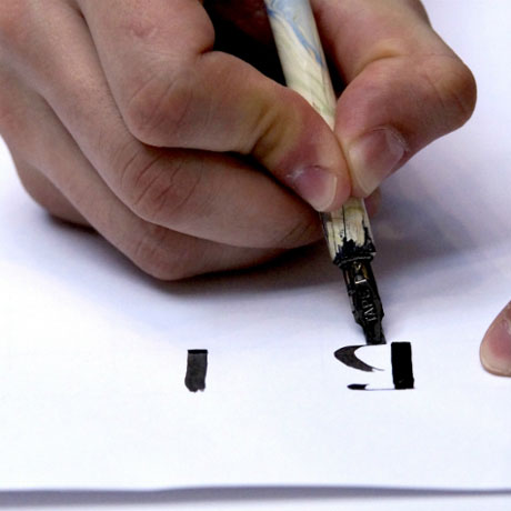 Каждая буква выводится в несколько приемов постановки пера, причем угол постановки пера меняется как между постановками, так и в ходе выведения штриха. Следствием чего является нюансировка толщины штриха в значительном числе элементов букв.