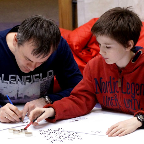 Заключительной частью стал мастер класс по каллиграфии от Светланы Корнеевой. Все желающие смогли познакомиться и освоить письмо в стиле «Древнерусский устав». Устав исторически является древнейшим рукописным кириллическим шрифтом, возникнувшим в момент создания кириллического алфавита.