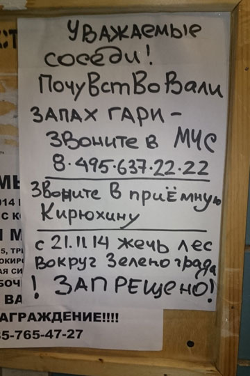 Подмосковные власти взялись за очищение зараженных короедом лесов, что предполагает вырубку деревьев, очистку делянок от мёртвых деревьев и сжигание остатков — это ветви, пни, кора и сучья. В прошлом году это привело к задымлению Зеленограда. Тогда удалось остановить сжигание до перемены ветра, однако гарью все равно тянуло, особенно в «старом» городе.