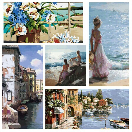Для творческих, в хиты продаж на сайте нашего магазина выходят наборы живописи по номерам летней тематики: «Летний городок«, «У самого синего моря«, «Венецианские дома«, «Утренняя прогулка» и «Морской натюрморт«.