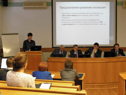 «Модуль скорочтения электронных текстов» стал одной из разработок, впечатливших жюри и зрителей — с его помощью Альберт Мухарамов, студент 4 курса факультета МПиТК (кафедры ИПОВС), предложил повысить скорость чтения текстов с экрана до 720 слов в минуту. «Если автор научит меня читать с такой скоростью, и это действительно сработает — готов быть вторым участником тестирования этого приложения и использовать его в работе и в жизни», — заявил Арсений Брыкин, заместитель генерального директора корпорации «Рослектроника» и глава оргкомитета конкурса.