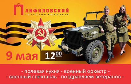 9 мая в 12 часов Торговый комплекс «Панфиловский» приглашает всех на праздник в честь 70-летия Великой Победы.