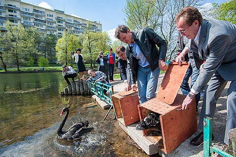 В холодное время года птицы обитают в личном домике в «Пони-клубе» на Алабушевской улице, весной их выпускают в пруд Быково болото. 13 мая префект Анатолий Смирнов лично запустил лебединую пару в пруд, а накануне праздников глава управы лично проконтролировал установку летнего птичьего домика.