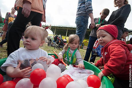 Пока взрослые участники готовились к забегу, на старт вышли дети. Для них аниматоры из семейного кафе «Андерсон» провели мастер-классы и организовали игровую зону.