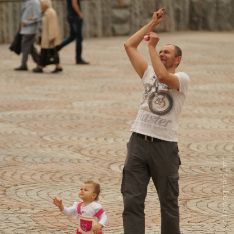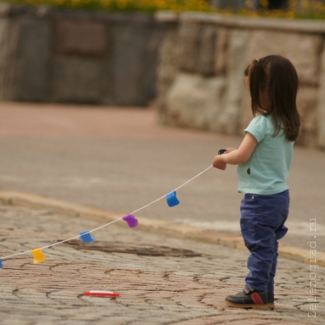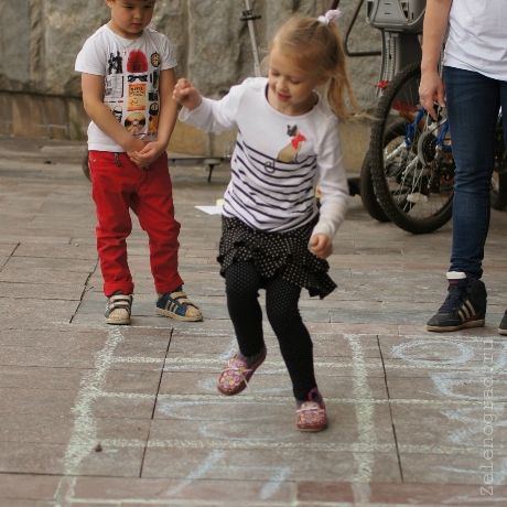 Скакалки и классики, вышибалы и резиночка, деревянные кораблики и воздушные змеи — эти и другие игры из детства показывали нынешние родители своим детям на уличном празднике «Счастливое детство без айпада» возле ДК.