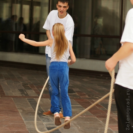 Прыжки через огромную скакалку