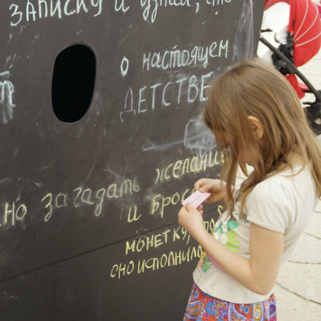 Куб, засунув руку в который, можно достать записку с предсказанием и узнать «что такое настоящее детство»