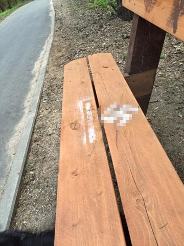 В лесу 8 микрорайона (за гимназией 1528) на одной из лавочек краской нарисована свастика. Обращение жителя в зеленоградскую дирекцию природных территорий месяц назад ни к чему не привело.