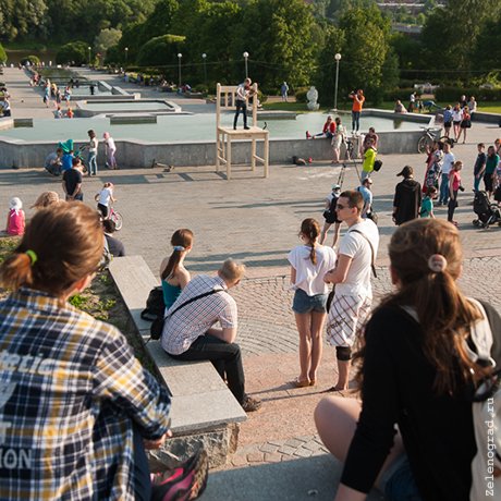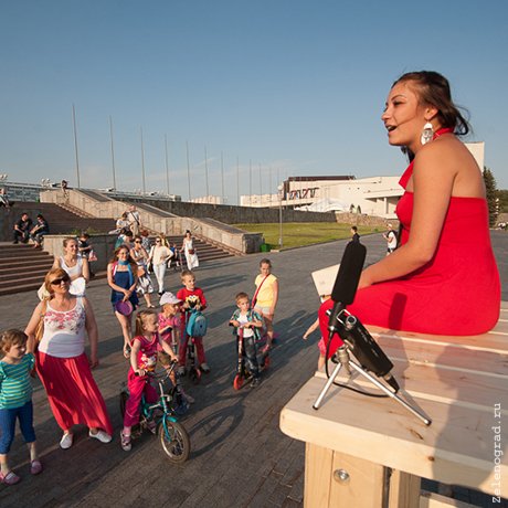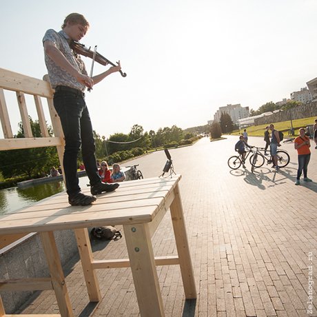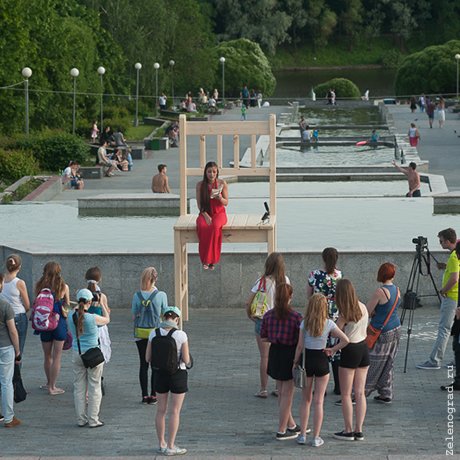 Творческая программа, в центре которой гигантский стул-сцена, стартовала в минувшее воскресенье у каскада фонтанов в парке Победы.