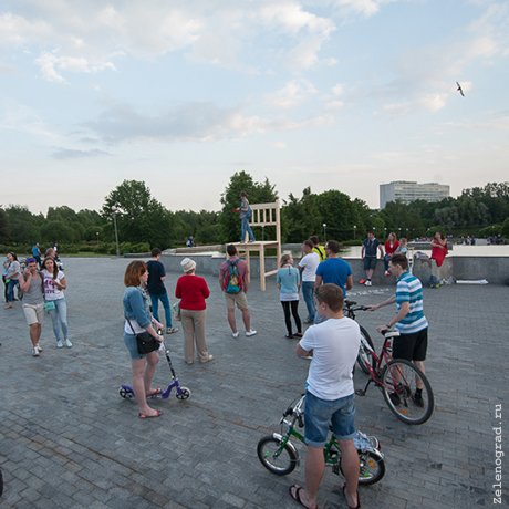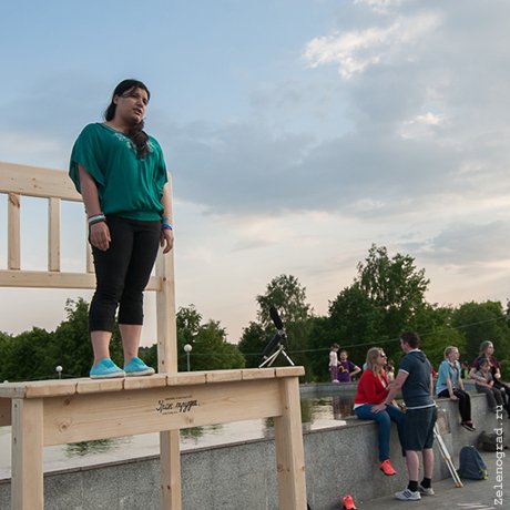 Необычный арт-объект в оживлённом месте сам по себе привлекал прохожих, не говоря уже о влезавших на него чтецах и музыкантах. В начале вечера выступали приглашенные артисты, потом проявить себя могли все желающие — такие нашлись из числа студентов МИЭТ.