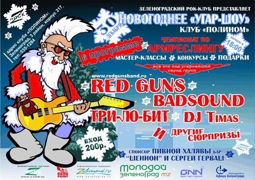 Зеленоградский рок-клуб приглашает всех на Новогоднее рок-шок-треш-маски-шоу, ведущими которого будут Дима SPIKE и MC RED-is из группы Red Guns.