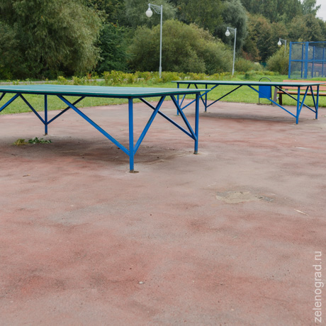 На площадке для настольного тенниса быстро разрушилось покрытие «Мастерфайбер» с резиновой крошкой, уложенное ещё в прошлом году. Управа договорилась с подрядной организацией убрать это покрытие, вместо него будет обычный асфальт — если жители не возражают.
