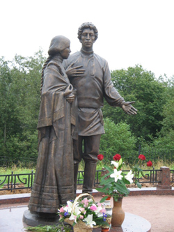 Как мы видим, поэт одет в косоворотку, подпоясан кушаком, на ногах сапоги и неширокие брюки, — костюм, не свойственный петербуржцу Блоку. Любовь Дмитриевна Менделеева изображена скульптором в русском сарафане и шали, с косой до пояса, что также не соответствует типичному представлению о ней по сохранившимся портретам. Однако приезжая из Петербугра и Москвы, в деревню, в имение, по свидетельству современников, супруги часто носили здесь именно такую, простую «крестьянскую» одежду. Видеосюжет об открытии памятника можно увидеть на телеканале «Вести».