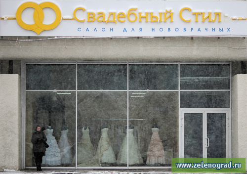 Салон свадебных платьев и аксессуаров «Свадебный стиль» открылся на площади Юности в конце ноября. Он находится прямо напротив здания зеленоградского ЗАГСа, в его стеклянных витринах можно увидеть свадебные платья, в основном, белого, кремового и других светлых оттенков. Также в магазине представлены необходимые свадебные аксессуары, в том числе меховые манто и накидки к зимнему сезону, всё это можно посмотреть в просторном торговом зале и примерить в комфортных условиях. Сейчас в магазине действуют 20% скидки. В ближайшее время в магазине должна появиться и свадебная обувь.