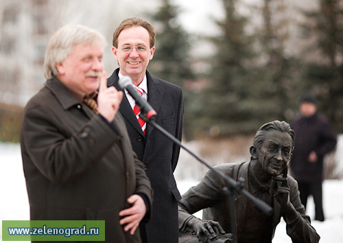 "Эта скульптура была установлена за счёт средств комитета архитектуры города Москвы. Называется она просто "Архитектор". Но в Зеленограде многое связано с именем архитектора Покровского, и поэтому образ этой скульптуры был взят с Игоря Александровича. Сегодня к нам приехали гости – главный архитектор Москвы Александр Кузьмин, представители Москомархитектуры, люди, лично знавшие Игоря Александровича. Просто приехали посмотреть и мы их просто встречаем", – отметил Бодаданов.