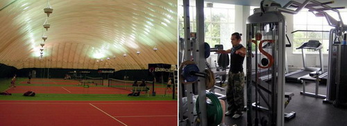 Кстати, клуб предназначен не только для занятий теннисом. Его изюминка — зал для сквоша, отвечающий всем международным стандартам и нормативам: прозрачная стена из прочного пластика отделяет игровую зону, все параметры выверены, сделано специальное двойное освещение. «В Москве таких площадок всего несколько», — отметил И.Филиппов. Есть и небольшой тренажерный зал с современным оборудованием, устроенный в эркере с великолепным видом на лес и Большой городской пруд.