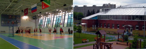 — Большой зал у нас дополнительно делится на два специальной разграничительной сеткой, так что одновременно в нём могут проходить, скажем, две волейбольные, баскетбольные или бадминтонные тренировки. Вот сейчас здесь занимаются волейболисты спортивной школы, у них собственное помещение старой постройки, зал перегружен... Мы планируем уже сейчас в дневное время оказывать такие услуги спортивным школам, проводить районные соревнования школьников.