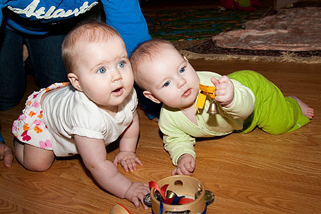 Дело в том, что мы не ставим задачу научить детей выполнять упражнения, делать то-то и то-то. Вся их жизнь — игра, и они познают ее, играя. Причем в раннем возрасте — через маму. Если мама включена в процесс, то включается и ребенок. Да мамы и сами с большим удовольствием повторяют потешки, прибаутки, звенят в колокольчики и стучат в бубны. Таким образом, для детей создается любящее и безопасное пространство, где они знакомятся со своим телом, учатся двигаться, чувствовать музыку и общаться между собой.