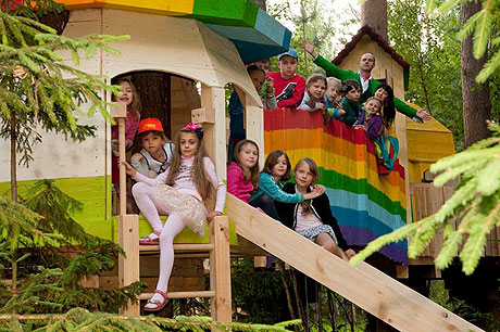 «Надземелье» и домики на деревьях — продолжение того, чем мы занимаемся: мы стремимся создать парк развлечений и развития, а это небольшой его прообраз. Свой первый парк мы хотели бы сделать по принципу парка «Мир Астрид Линдгрен», который создан в её родном городе Виммербю в Швеции, в 300 километрах от Стокгольма, на большой лесной территории. Там нет ни одного электрического аттракциона, но есть всё, что описано в её повестях: вилла «Курица», пиратский корабль, домик Карлсона на крыше, с которой можно кататься. То, что ты читал в книгах, ты вдруг видишь в реальности, в объёме, впитываешь и проживаешь. Есть живые персонажи, есть маленькие домики для детей, в которые не может залезть взрослый. И еще там периодически проходят театрализованные выступления и разыгрываются сценки.
