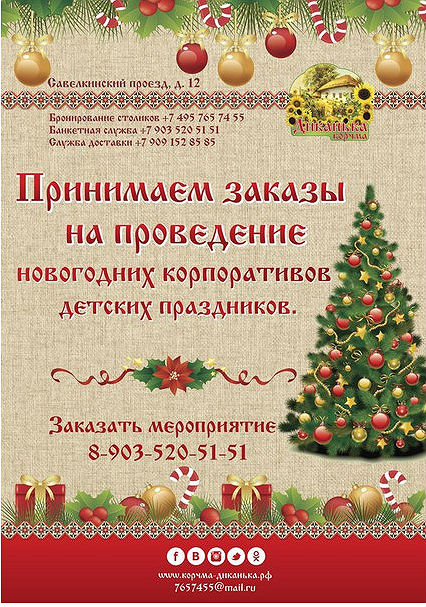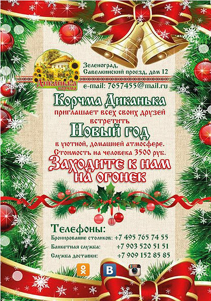 Приглашаем Вас отметить наступающий Новый год в нашем чудесном ресторане Корчма «Диканька». А также провести новогодний корпоратив. Уже началось бронирование столов. У нас всегда уютно, весело, вкусно. Заходите к нам на огонек!