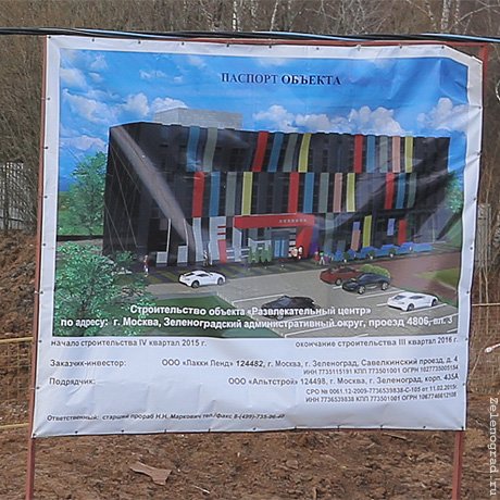 О возведении развлекательного центра на месте бывшей насосной станции зеленоградские власти заявили еще в 2007 году. Заказчик и инвестор стройки — ООО «Лакки Ленд», которому принадлежит этот участок; работы ведет компания «Альтстрой». По первоначальному проекту, это должен быть замок в средневековом стиле с двумя подземными и тремя надземными этажами, внутри планировали разместить рестораны, фитнес-центр, танцпол и прочие развлекательные заведения. Площадь участка составляет 0,5 гектара, общая площадь застройки — 1838 кв.метров, предусмотрена автостоянка на 45 мест.