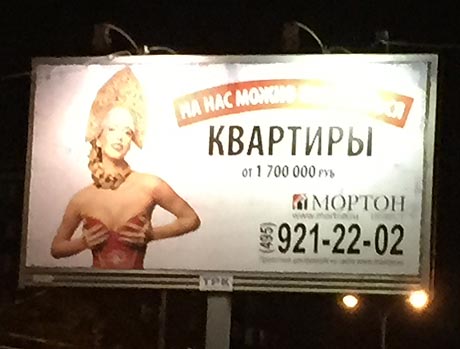 И еще, я не силён в вопросах рекламы, но считаю, щит может принадлежать не компании Мортон, а рекламному агентству, которое действует, соблюдая закон "О рекламе". И отчего то я уверен, что нет там статьи, запрещающей изображение на рекламных щитах "русских женщин со всеми историческими символами, такими как русский народный наряд, русские узоры, женская русая коса, кокошник, женщин в нарочито непристойном виде и позе." И, вообще, эпитеты, придуманные Сергеем Котельниковым, у меня, кроме улыбки, ничего не вызвали.