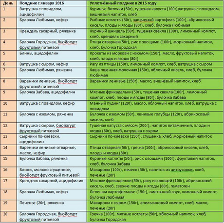 Формально причинами этих изменений в меню называют участившиеся во втором полугодии 2015 года жалобы родителей на то, что дети приходят домой голодными. Правда, родители жаловались на сокращение порций мясных блюд, части гарниров и хлеба на обед, каш на завтрак, фруктов и овощей — а получили ужины и уменьшенные полдники.