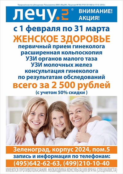 В медицинском центре ЛЕЧУ.РУ (корпус 2024) до 31 марта проходит акция Женское здоровье. Скидка 50%.