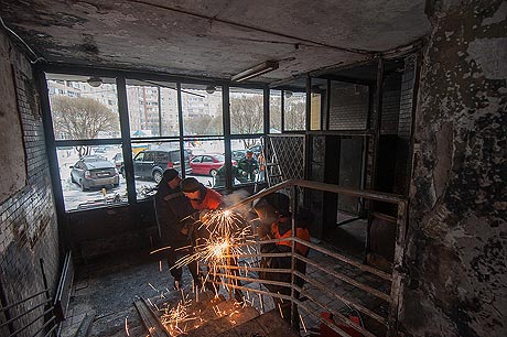 Утром подъезд начали восстанавливать: к 10:00 убрали мусор, лестницы с третьего этажа и выше отмыли от копоти, пришли электрики и стекольщики. Этот пожар не единственный, жалуются жители, — в последнее время кто-то поджигал мусорную камеру, электрощиток, дверь в тамбур двух квартир. Недавно был пожар в соседнем 14 подъезде. Экстренно назначено собрание с участием сотрудников префектуры, управы и жителей.