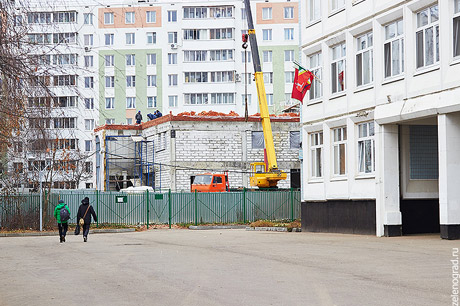 Футбольное поле с административным корпусом для круглогодичных соревнований строят почти два года в глубине 9 микрорайона Зеленограда, возле жилых домов, школ и детского сада. Стройку сначала обещали закончить к лету 2015 года, затем окончание работ сдвинули на 2016-й. Работы прекратились в марте прошлого года. Если стройку не завершат к сентябрю, школьники 9 микрорайона так и будут ходить по узкому тротуару между строительным забором и проезжей частью.