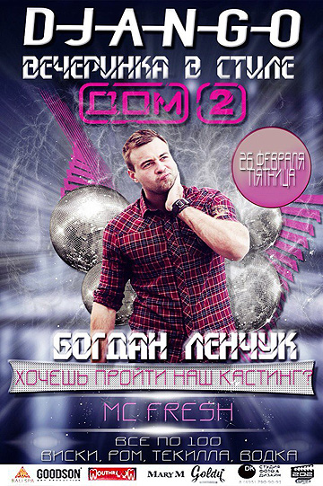 26 февраля/пятница «Вечеринка в стиле Дом-2» специальный гость: Богдан Ленчук (участник телепроекта дом 2 на ТНТ)