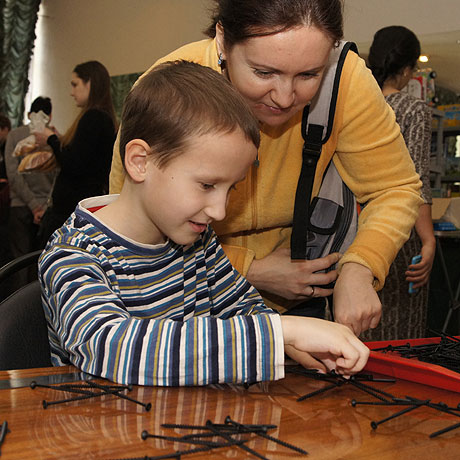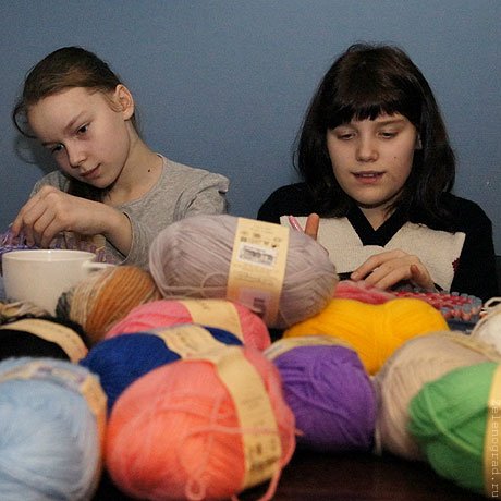 На «вязальной мельнице» без спиц и крючка каждый мог за 10 минут связать игрушечный шарфик