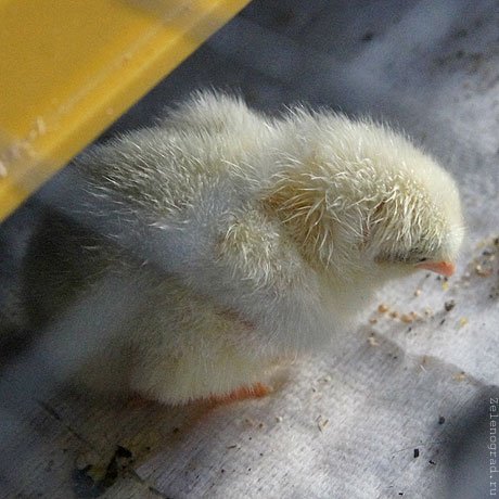 Подросший птенчик — цыпленочек — в отдельной клетке