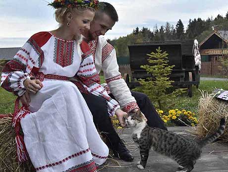 Непосредственно возле веранды построен мост через пруд с кованными перилами, по нему жених должен будет пронести невесту, в доказательство того, что он справится с любыми сложностями и сможет быть ответственным за свою семью. Там же молодожены могут повесить замочек «влюбленных», символизирующий верность, сделать прекрасные фотографии на фоне зеленого леса, водоема и белых лебедей.