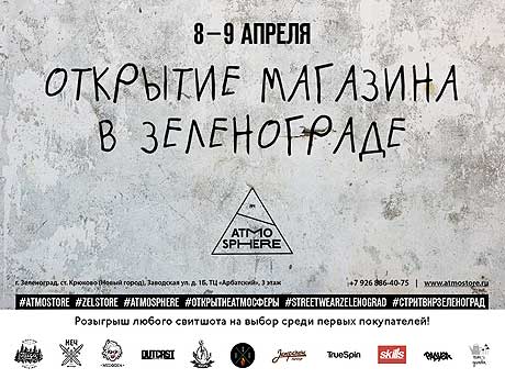 В дни открытия, 8 и 9 апреля, «Атмосфера» проводит много акций и конкурсов с интересными подарками! Так, первых покупателей ждет розыгрыш любой толстовки на выбор победителя, а для авторов лучшего тега с названием магазина — любая футболка в подарок! Конкурсы пройдут и на страничках «Атмосферы» в социальных сетях.