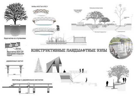 На фоне панельной застройки 60-х экопарк должен создать яркий всесезонный декоративный эффект за счет правильно подобранных видов деревьев и кустарников, образующих пестрый растительный массив.