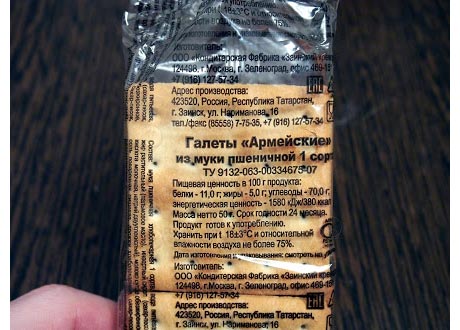 На ужин — макароны по-флотски с мясным фаршем (тоже не менее 60 грамм). В дополнение к этому рациону задержанным положено 20 грамм сахара (примерно четыре чайные ложки «без горки»), 3 грамма черного чая (в обычном пакетике — 2) и 100 грамм армейских галет или крекеров.