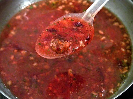 В обед на первое — концентрат «Борща с мясом витаминизированного» (не менее 40 г). Мясо в борще, как сказано в требованиях к поставщику, должно присутствовать «в виде кусочков разваренного фарша».