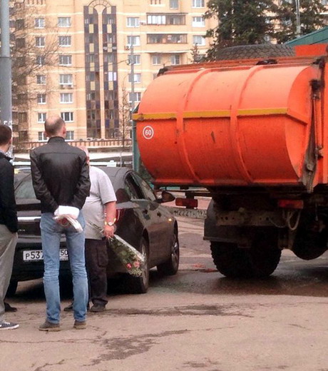 Про мусоровоз -- всегда было интересно, как эти лихие чистильщики-уборщики не задевают машины, прям чудеса и везение %) Но вот, видимо, бывает.