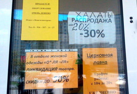 Половина магазинов-арендаторов «Ажура» уже съехали. Те, что еще работают, повесили объявления о том, где их можно искать после 23 мая.