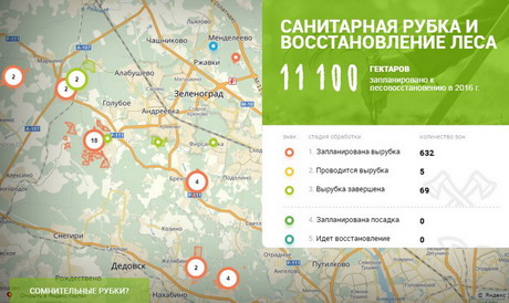 Портал «Наш лес.Посади своё дерево» предлагает всем желающим сервис — как узнать законность вырубки и когда будет проводиться лесовосстановление. Интересующее место можно проверить по карте санкционированных санитарных вырубок.
